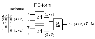 This result can also be accessed directly by expressing the truth table's only "0" as a maxterm (a + b).