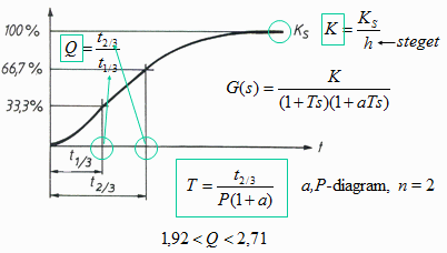 Observera! avrunda de avlästa tiderna t0,33 och t0,66 från stegsvarskurvan till närmaste 0,25 sekund!